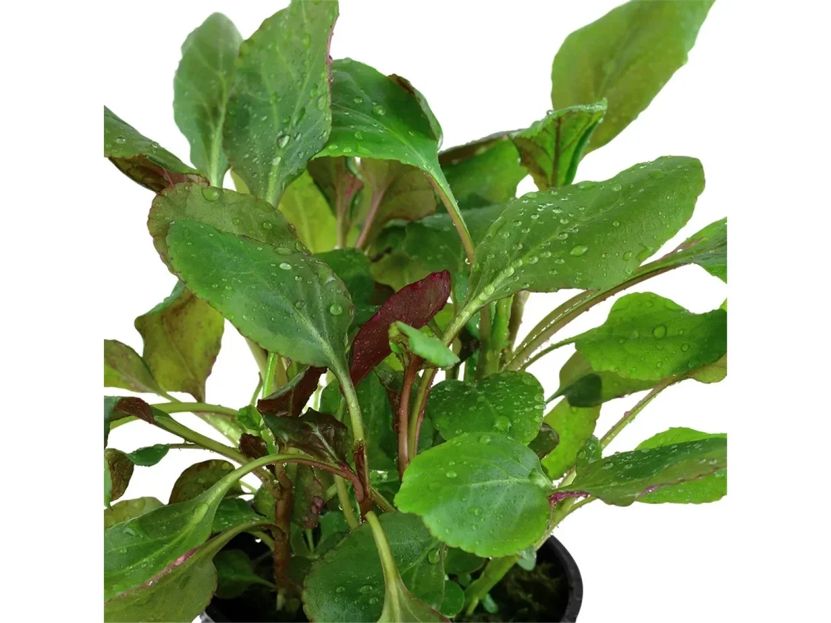 En forme émergée, elle devient rouge violacé, ce qui fascine les aquascapers.